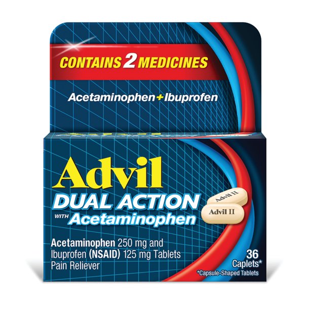 Advil Dual Action Coated Caplets with Acetaminophen are the first and only FDA approved pain relief medication...