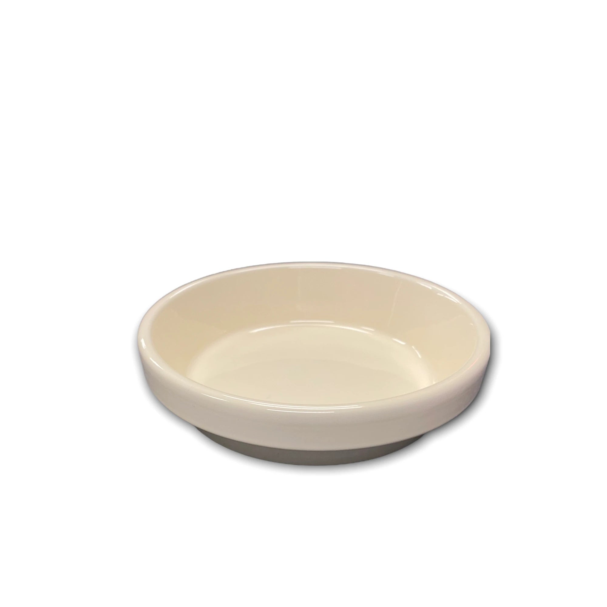 7.75"d x 1.75", white, powder coated ceramic saucer.